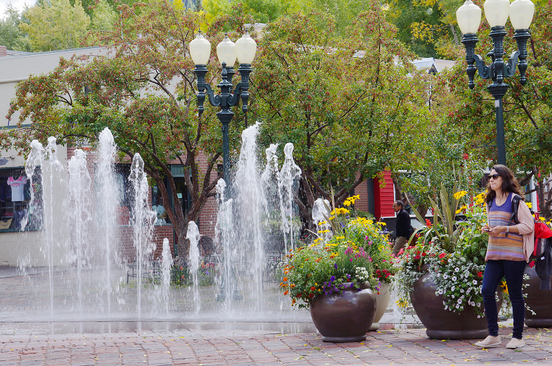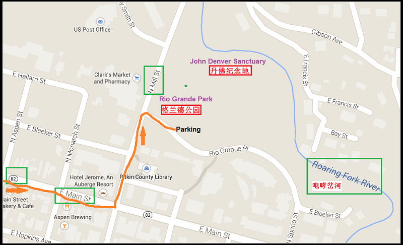 来到艾斯本小城的游客都会去拜访丹佛纪念地(John Denver Sanctuary),我们也不例外。沿着82号公路进城,改名叫E Main St 转到N Mill St,就会看到位于街心的格兰德公园,相邻的就是丹佛纪念地。