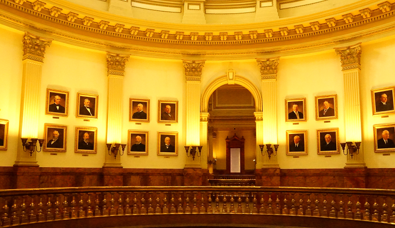 二、三层悬挂着手绘的历任州长和历届美国总统的画像,四层则是科罗拉多历史上的“名人堂”。