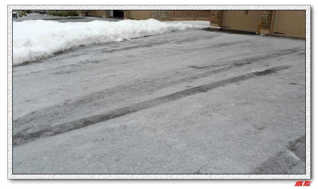 driveway俨然成了溜冰场,表面覆盖了厚厚的冰,虽然撒了盐还是无济于事。