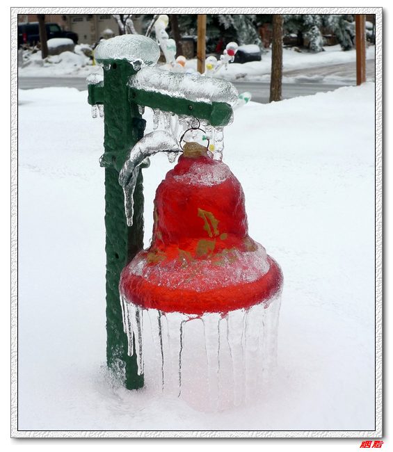 圣诞灯饰成了冰灯。