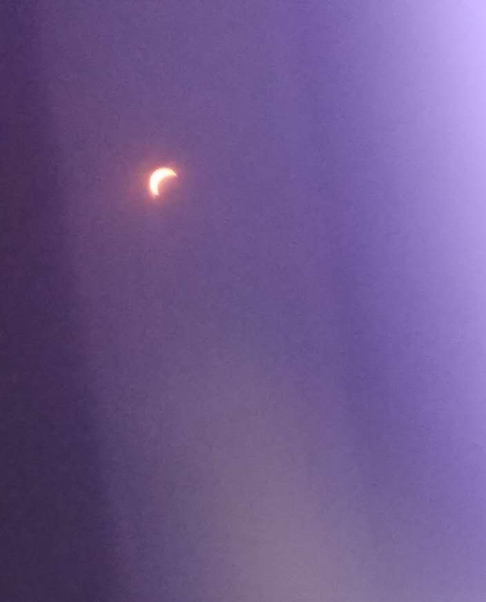 用手机抓拍到日食!???? 今天下午4点20分左右,在美京华人中心大门口,我用看日食的眼睛盖在手机的摄影孔外面,然后对准太阳,眼睛只看手机,调整焦距,抓拍成功!这里上照片显摆显摆(^_^)