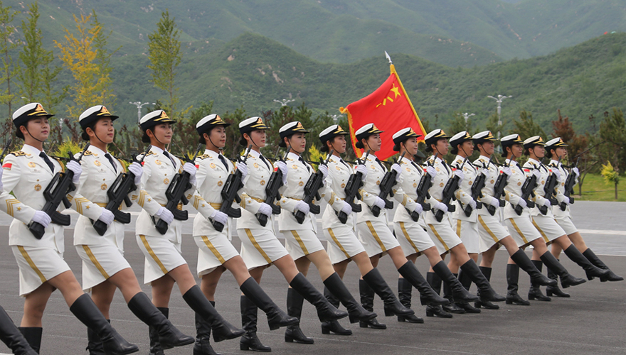 为阅兵仪式,手持“三无”冲锋枪(无枪拴、无撞针、无弹夹)练正步走的“女兵”(网图)