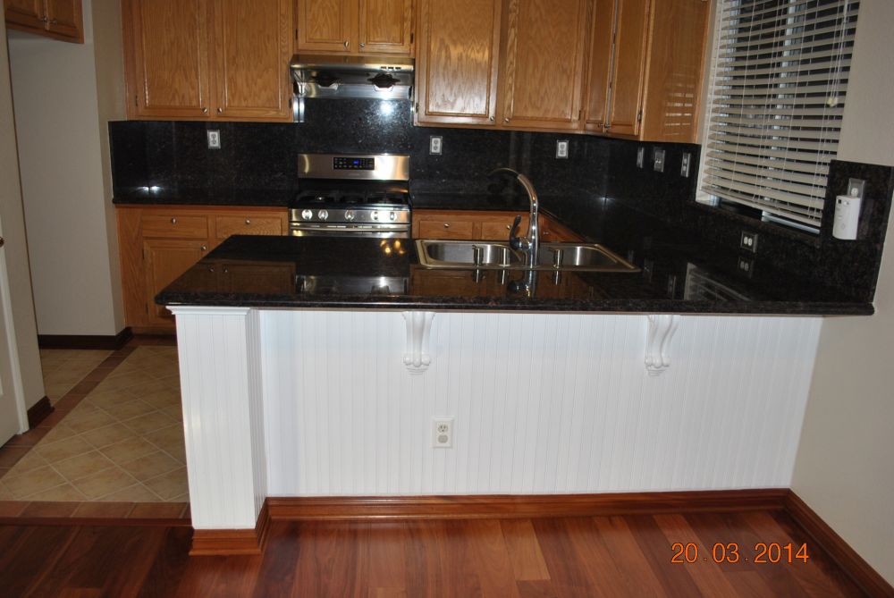 为厨房台子侧面拼的wainscot(2010年)和厨房地面铺的ceramic tile(2002年):