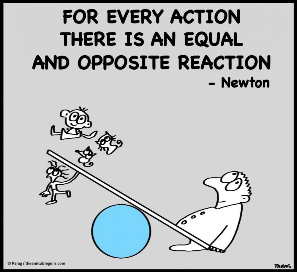 下面是牛顿的第三定律,是佛教因果律的直接应用。 看了之后, 你就会明白佛祖为什么这样讲了:“诸恶莫作, 诸善奉行, 自净其意, 是诸佛教”。