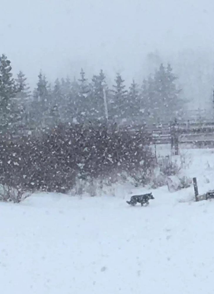 有一天的风雪特别大,吹垮了腐朽的栅栏,它从这个缺口跑了出去,上了高速公路,造成拥堵,被好心人下车抱起,按照脖子上的牌子,给政府打了个电话,通知我们去领。把它从别人家领回时,它象刚被收养回来时一样,浑身发抖,估计这一次吓惨了。