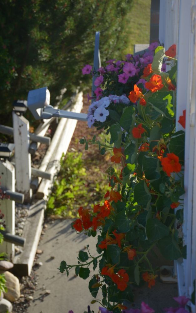 pertunia,矮牛。白色是买的小苗,1。5元一棵。这个檐上有4棵。