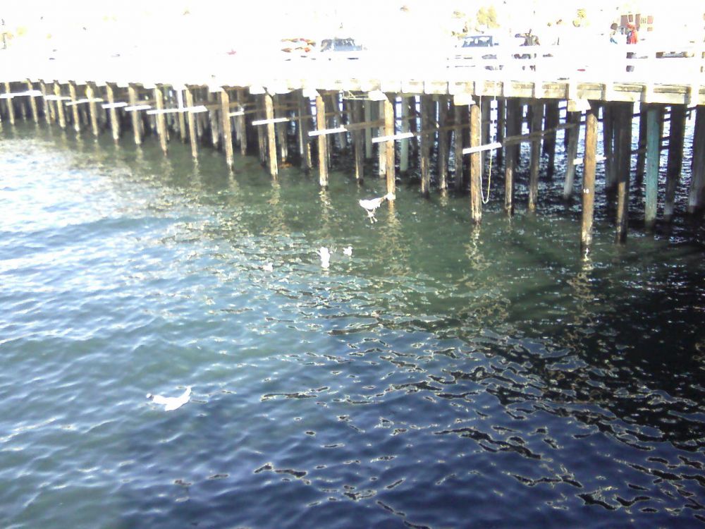 离开木板人行道,我们又转入Santa Cruz渔人码头。刚踏入,就见一人拿着一个渔网往下洒,捕鱼呀,走!看看去!