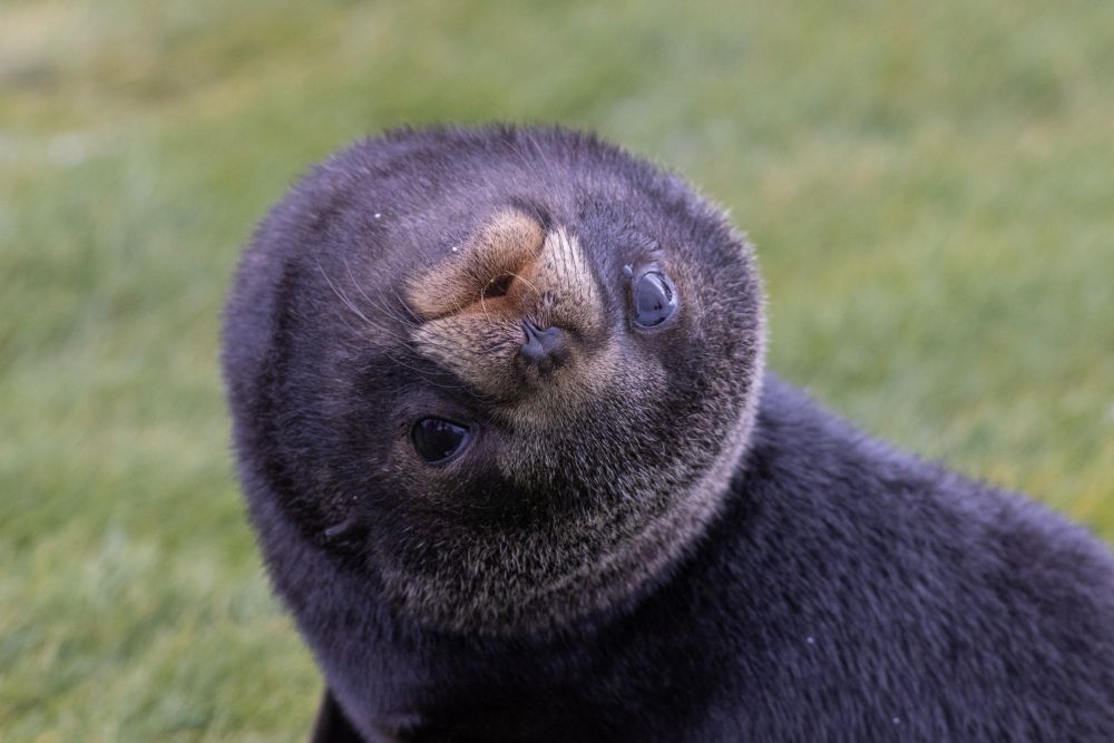 欢迎我们的是Fur Seal(毛海狗,拟海豹),有前肢到底方便,跑得飞快还到处惹事,刚出生的幼崽黑黑小小的满地都是。公的毛海狗高大威武重达百公斤以上,被他撞一下或咬一口可不得了,又不能打又不能对着他吆喝,只允许高举双手对峙,我手上拿着亮闪闪的相机镜头,公海狗看看我又看看高高举过头顶的相机,怯怯地跑远了。路上毛海狗幼崽好奇地扭转着脑袋看我,还拍到一只毛色退化了的毛海狗幼崽,这可不是动物的白化,因为白化变种的眼睛会变红。远处有几头Elephant Seal(海象,真海豹 ),个头更硕大,懒洋洋地躺着,眼都懒得睁一下,不像它们的北极亲戚,要随时逃离北极熊口。到是海象的幼崽呆萌呆萌地,躺在地上睁着两只大眼睛打量着我。