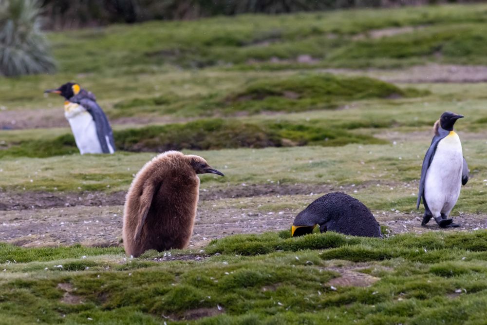 图九,毛未褪完全的王企鹅