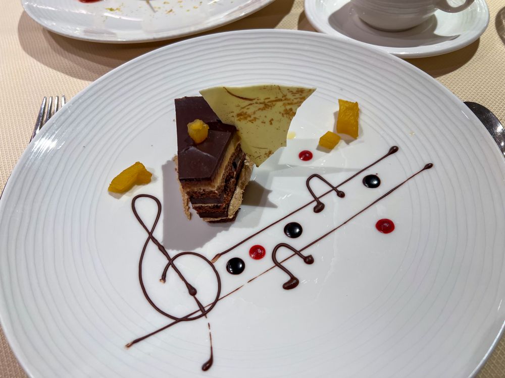 新年大餐是不能少的,船上每人送了一个用朗姆酒调的冰淇淋球,酒精太浓了,虽然很香但只敢泯了一下。