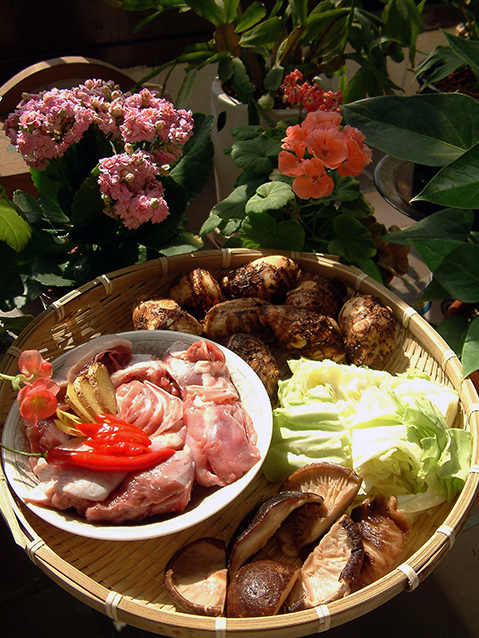 材料 :鸭小半只斩块,艿芋蒸熟去皮,香菇泡软,卷心菜(高丽菜),姜片,辣椒。