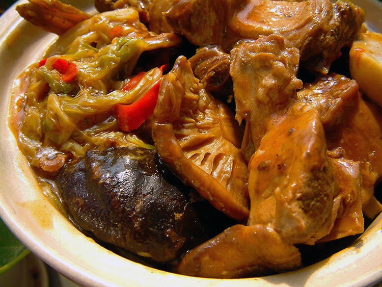 做法 :麻油烧热,放进姜片/辣椒片/鸭块翻炒爆香,注入清水/泡香菇水/米酒烧开后上盖,转小火烧煮约60分钟。加入艿芋/卷心菜/香菇和其它调味料,转中火继续焖煮10分钟。掀盖转旺火拌炒至汤汁稠浓即可。