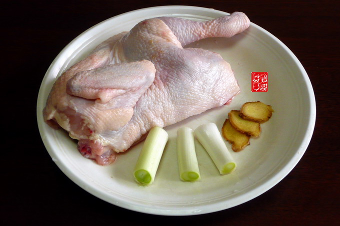 1. 半只鸡洗净,用料酒,葱,姜,盐抹遍,腌制一小时后放进锅里煮10分钟,熄火后继续焖10分钟,取鸡胸肉撕成细丝加入少许盐,鸡汤,拌均备用。