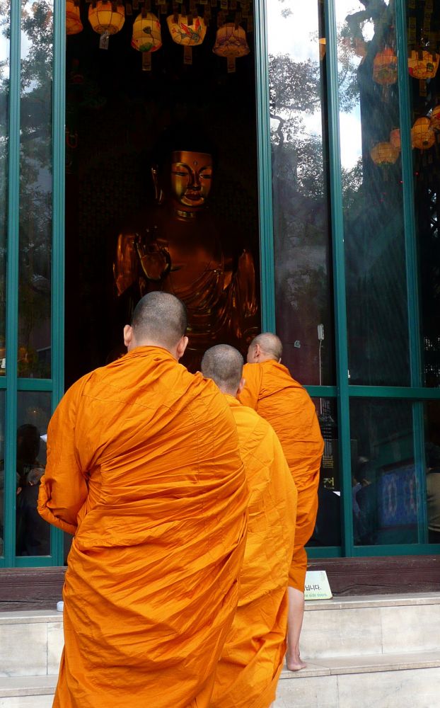 大门口三位来至远方的外国僧人,打着赤脚,双手合十,虔诚的鱼贯而入,令人肃然起敬。。。