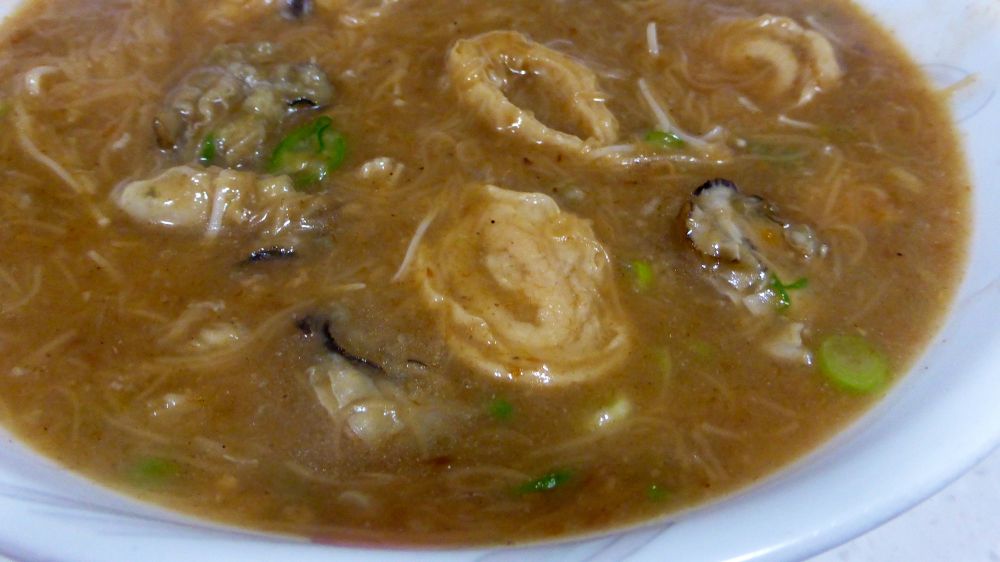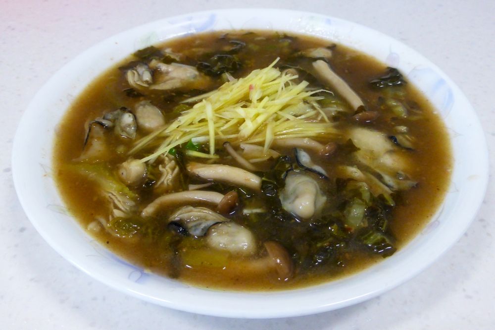 沙茶咸菜牡蛎羹:葱油酥/嫩姜/香醋使这套汤更加鲜美。。。