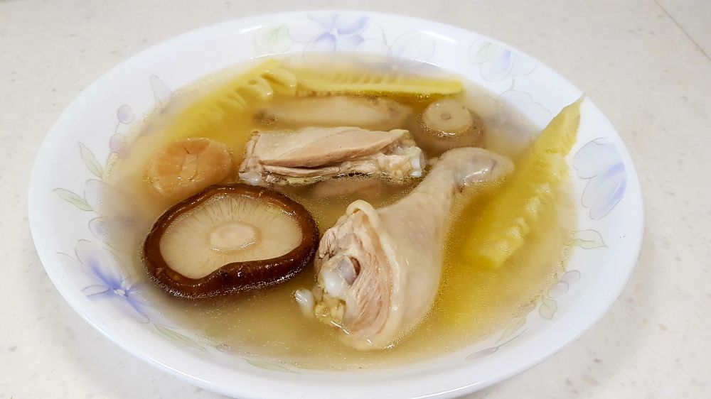 鸡胸肉切片,春笋/香菇/蘑菇/辣椒切片,用冬阴功酱做香辣风味。。。