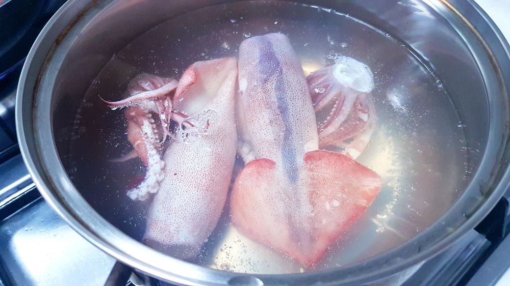 中小体型的鱿鱼很容易熟,烫2-3分钟就行了。