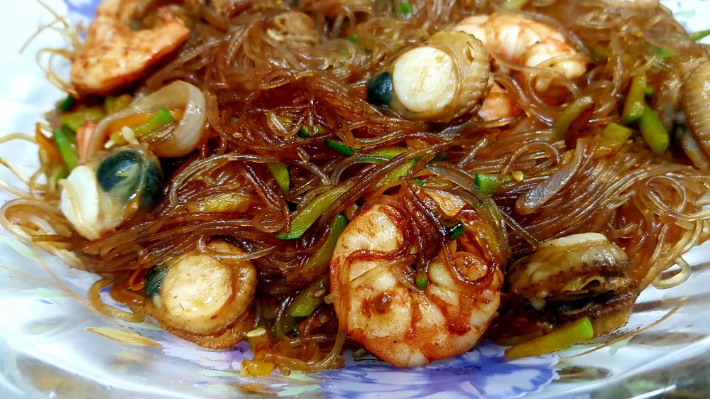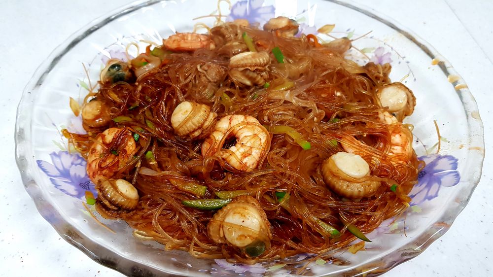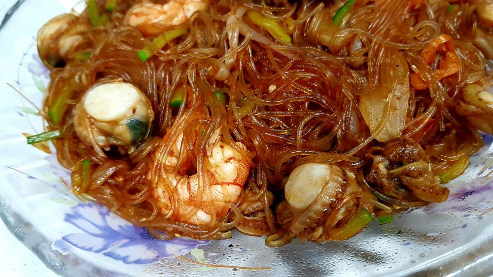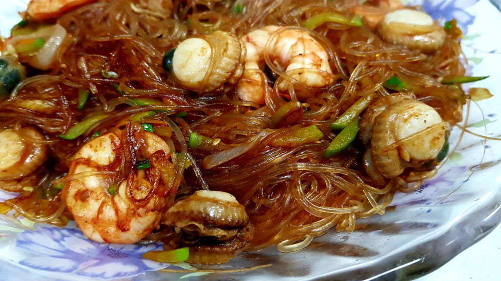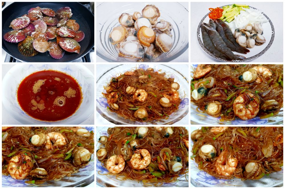 用扇贝和虾炒粉丝,十分鲜美惹味。。