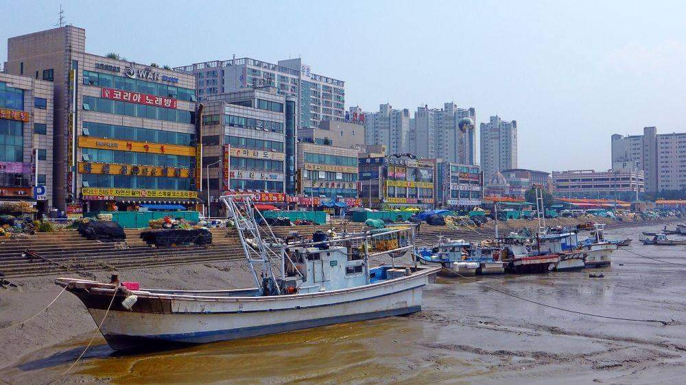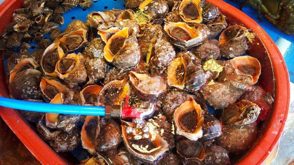 这里是月串,就是经常去过的苏莱浦口海鲜市场的对岸,也是吃海鲜的好去处。连接两岸的是一条狭窄的行人铁桥,但月串的人气显然比不上苏莱。虽然也是满街的海鲜馆子,但人流就差了很多。不过也好,吃饭不用等位,价格也更加便宜。老实说自己一个人在海鲜馆子里没戏唱的,很想吃碳烤贝类,但最低消费一人份量太大,毕竟不再年轻,已不是以往的大胃王,吃不完的。点了一份海鲜汤面,里面有蟹/虾/扇贝/蛤蜊/蚶,所有材料全部是从鱼缸里现捞的,连虾都是活的,那汤的鲜美度真的不得了。一人份的汤面还是太多,没吃完,真有点可惜。。。