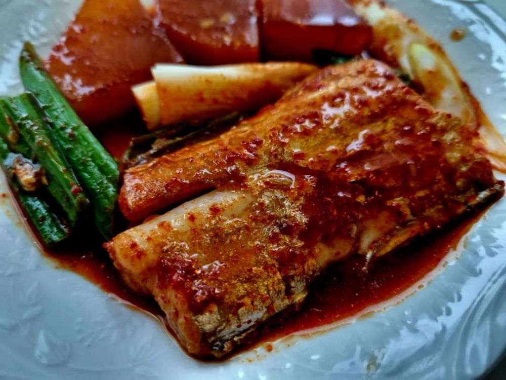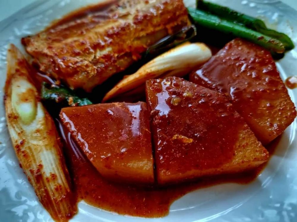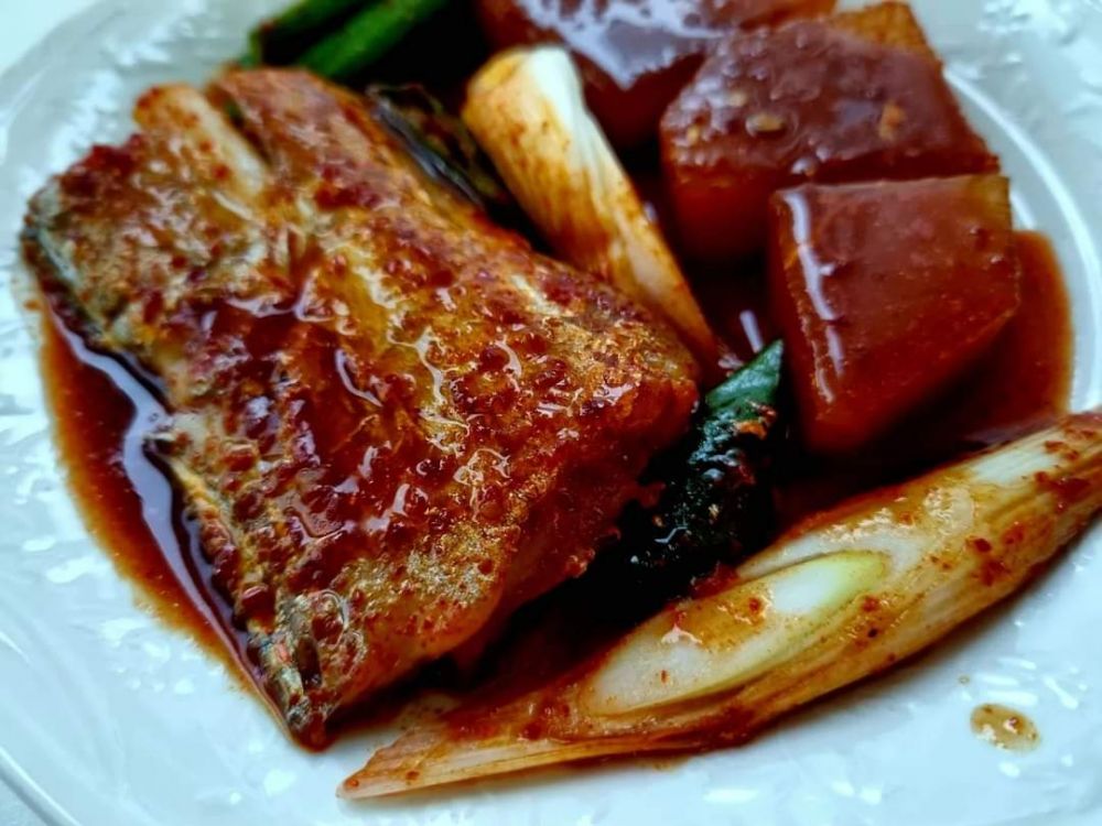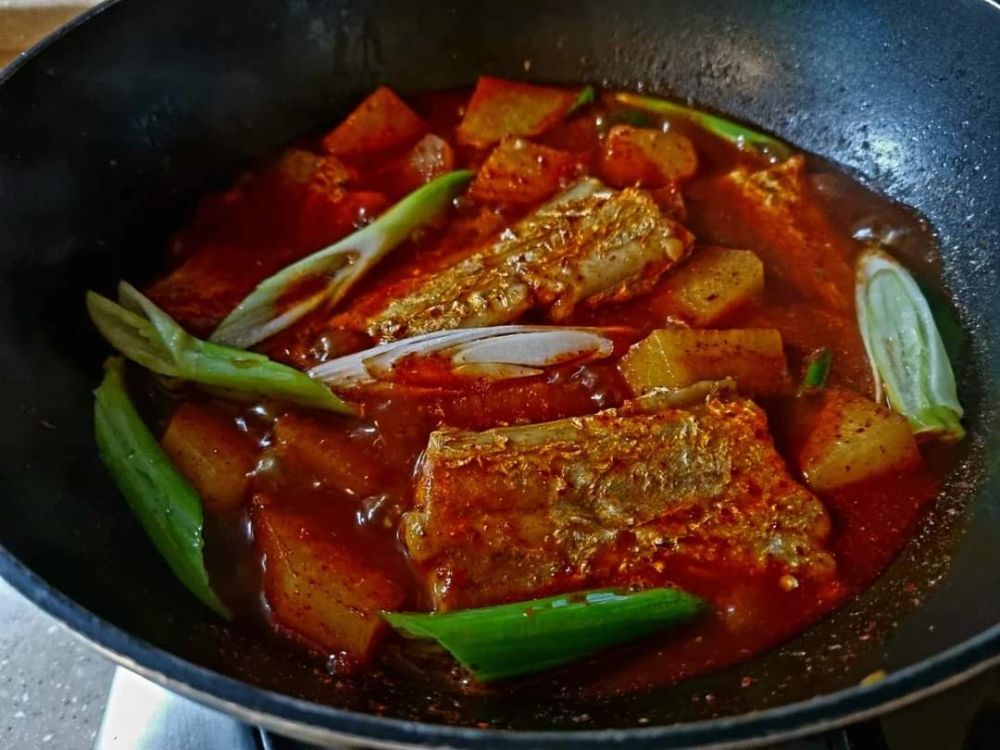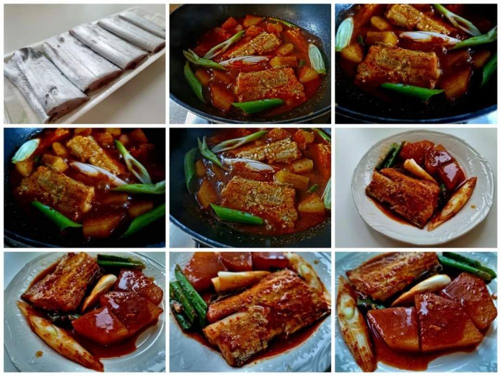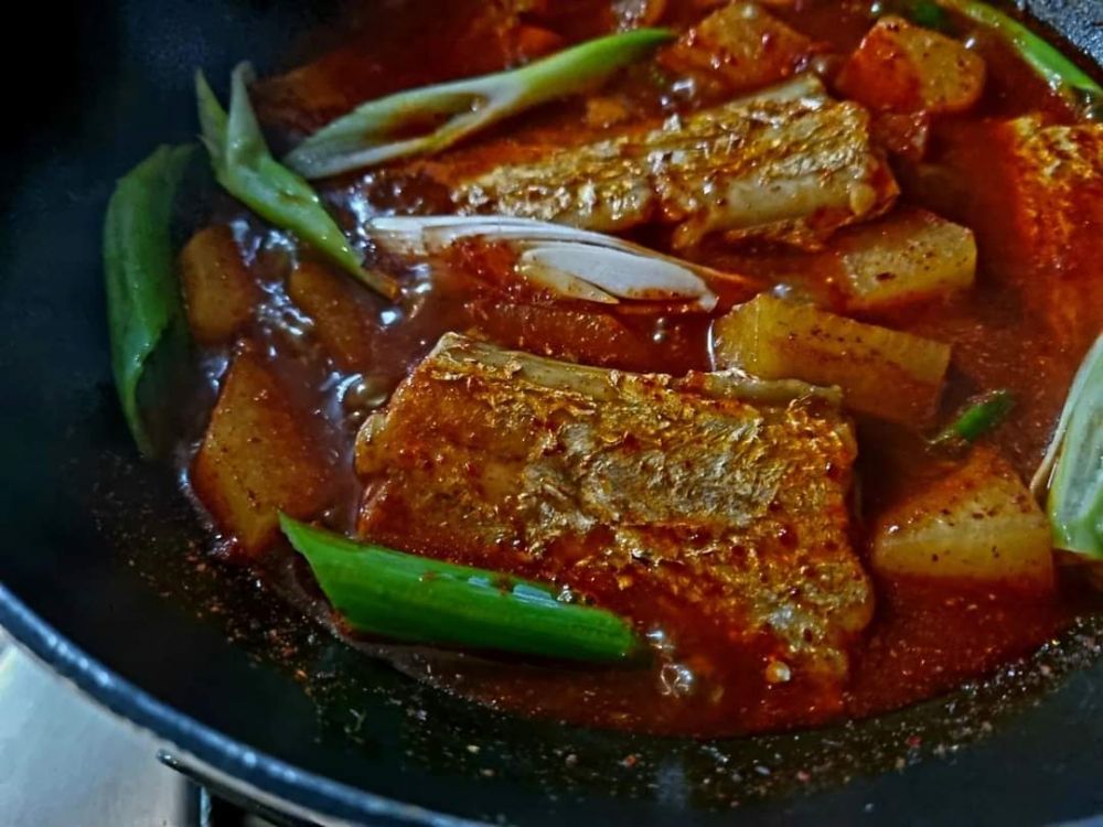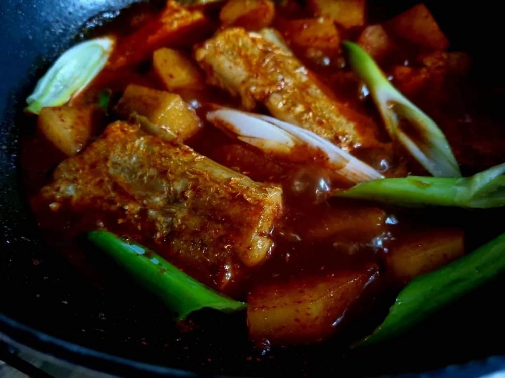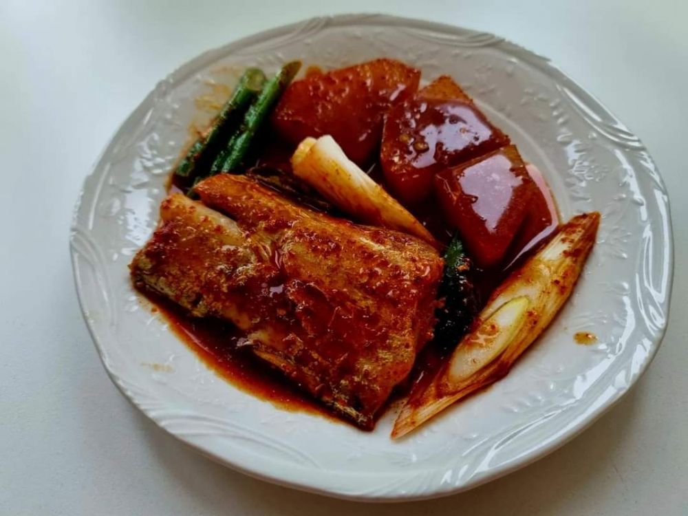 冷冻过的带鱼用辣椒酱和萝卜一起炖煮,最大限度压住腥味,挺下饭的。