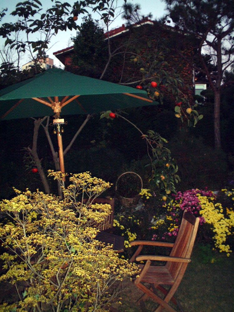 几年前一位搞艺术的韩国朋友准备移民澳洲,临行前请我们去他家聊聊天,吃顿饭。他是首尔极少数不住在社区公寓的人,有一栋美式洋房,一个小花园,几颗果树。最近又跑回首尔置产,说是海外住累了。从电脑里找出当时的照片,回味一下。。。