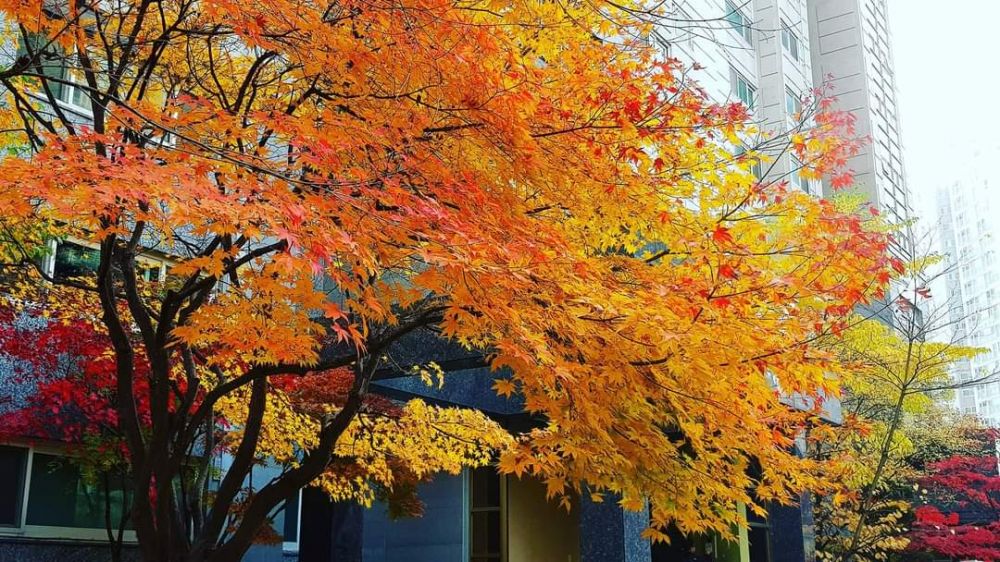 观赏秋色不一定要远行/登山或探访公园/宫殿,自家居住社区也有惊喜的。。。