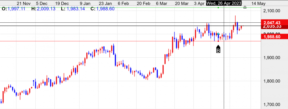 交易验证NO.5 多仓 Gold-cash,入多价格为$2004.88,该笔交易持仓了一段时间,原因就是预设的止损价格($1969.27),没有被碰到,虽然就差那么一点($2.41)。开仓后,一直是浮亏状态,摇摇欲坠,看上去随时都有被平仓的危险(我的预设止损价格都是挂在场内),但是在第八天后,终于走出上升行情,脱离了开仓价格区域。止盈价格设在$2111.99,(已经挂在场内)黄金价格现在已经是历史新高,能不能到,确实是没把握,不知道,要看市场是否给力。价格再回头,结果是止损平仓也说不定。