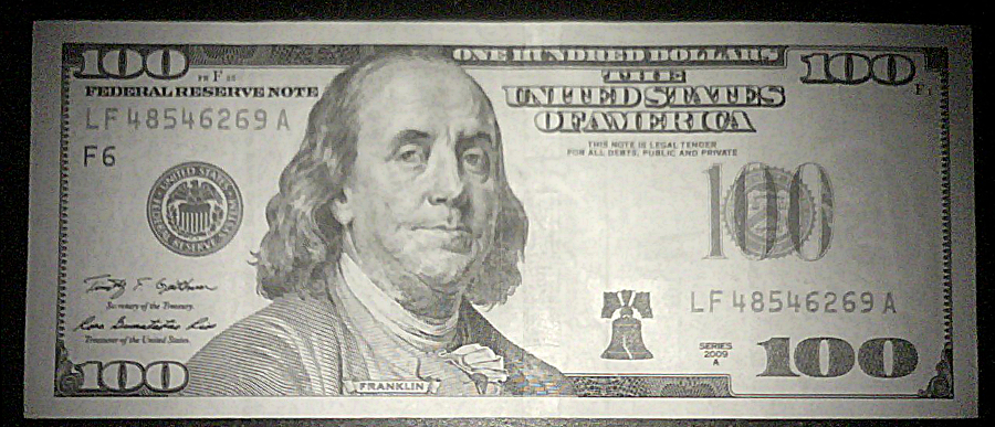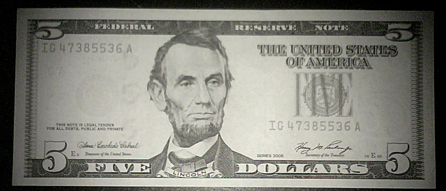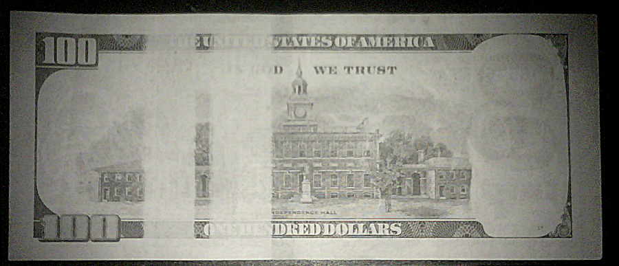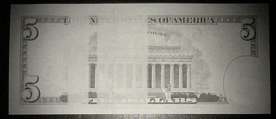 $5 正面 $5 背面 $100 正面(新版) $100 背面(新版) 能看出少点什么吗?