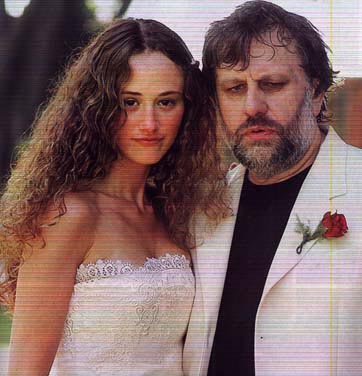 齐泽克有二段婚姻。妻子是阿根廷时装模特,艳光四射,比他小三十岁,还是朋友的女儿。这段姻缘很为读书人长脸,其意义不下于阿瑟·米勒迎娶玛丽莲·梦露。书生自有书生福,条条道路通香闺。