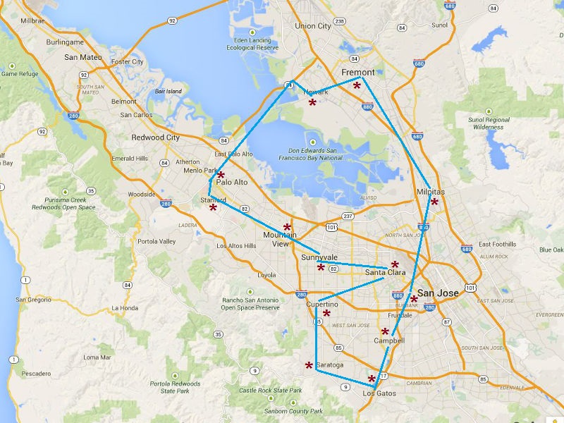 其实我早就知道硅谷(Silicon Valley) 不是正式地理名称。硅谷地处美国加州北部旧金山湾地区(简称湾区)以南,东依汉密尔顿山、西靠圣塔克鲁兹山脉。地中海气候。