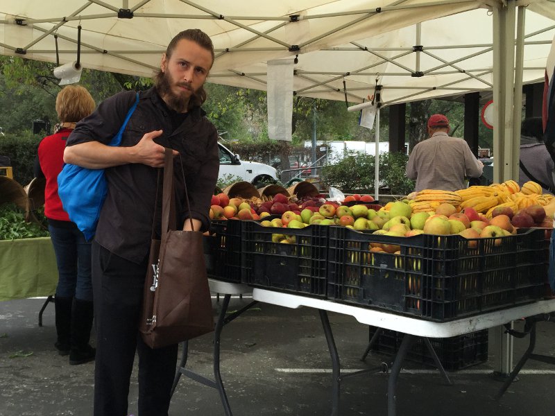 买苹果的的男人。与硅谷其他Doentown一样,每逢周六或周日人们都出来赶集,购买当地产的土特产。