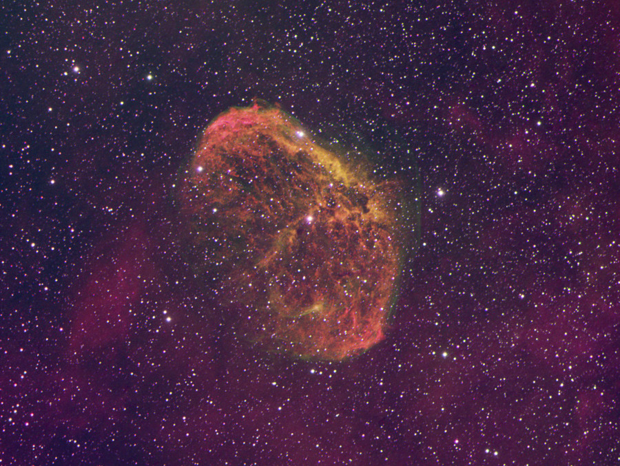 哈勃色听起来很高科技。其实道理很简单。就是把用Ha,OIII和SII三种窄带滤镜的照片分别按照红绿蓝三基色合成就行了。