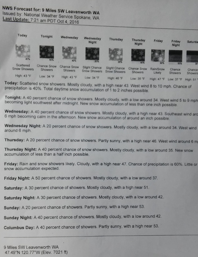 转念一想,Colchuck Lake 和 Stuart Lake 都很近,现在又是秋色最好的时候,就是这下雨天,可能也会有不少人来个当天往返的徒步,这会儿都是往回走呢。我这一路遇到这么几个人,还真不算多。