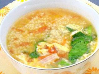 14、把面疙瘩汤盛入小碗,撒上鸡蛋饼丝即可。