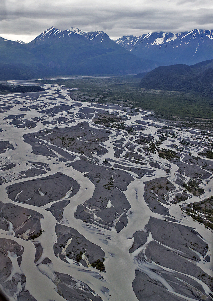 13. 再往东南飞,就看到了一个蛛网状的河床与Skilak Lake相连,那是一个由冰川融化形成的河床