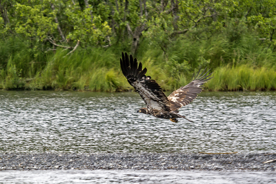 10. 飞机降落在Upper Russian Lake,在水面上滑行靠岸时,惊动了停在水边的鹰