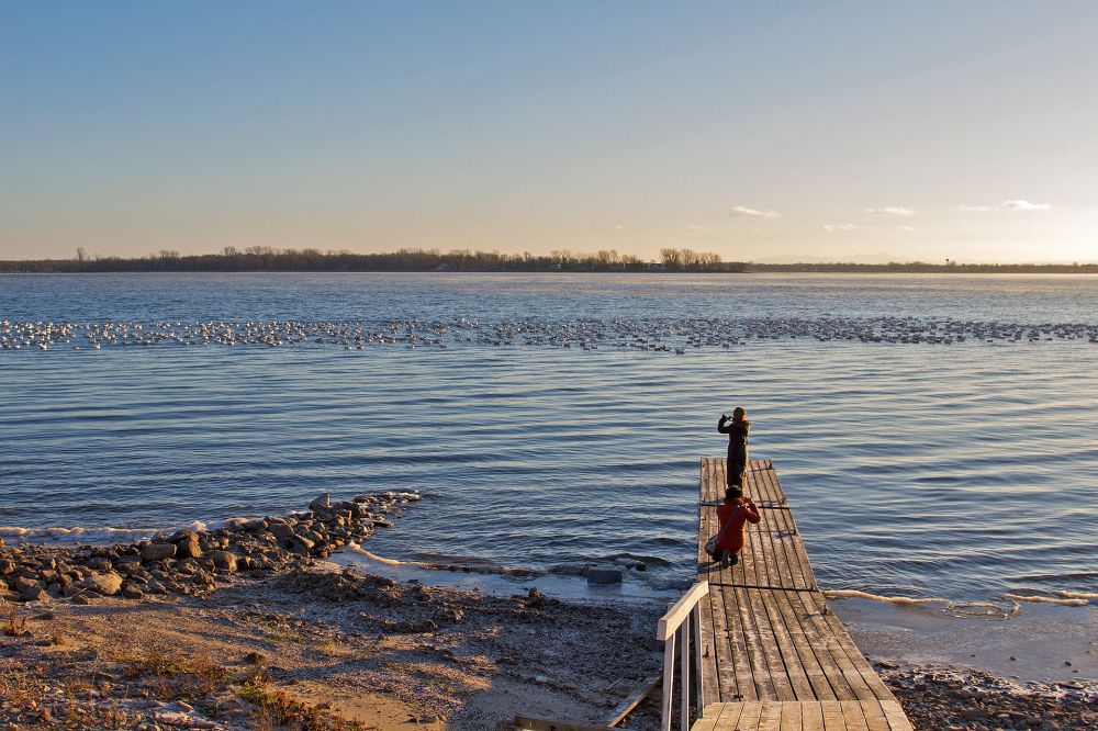 16. 让人惊喜的是,有两位美女出现在了我的镜头里,我不知道她们究竟有没有数清楚有多少雪雁停留在湖面