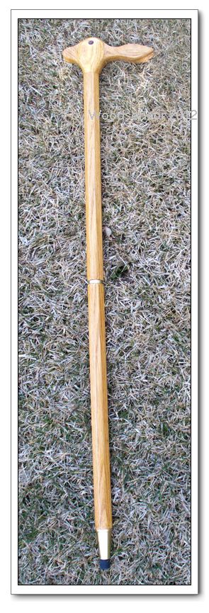 2012年夫人回国探亲,临行前一个月花了点业余时间便给老丈人做了一个拐杖。橡木制作,拐体为1英寸大小的8面柱体。拐杖设计为可拆开的两段式,以方便装到旅行箱中携带,两个拐杖体中间用铜铸件连接,拐角配有下锥形的铜件,并用橡皮头连接,以起到缓冲和防滑作用。