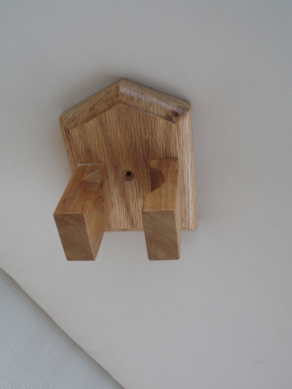 做好后,又根据拐杖形状做了个悬挂件,把它安到墙上后可以把拐杖不用时放到上面: