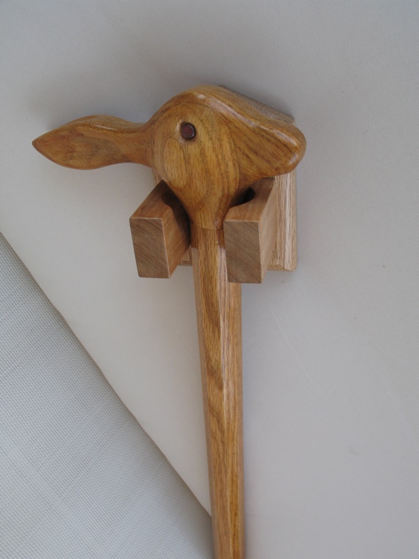 因丈人属兔,故手柄设计成兔子形状,手工雕刻,并镶有紫心木做的眼睛。