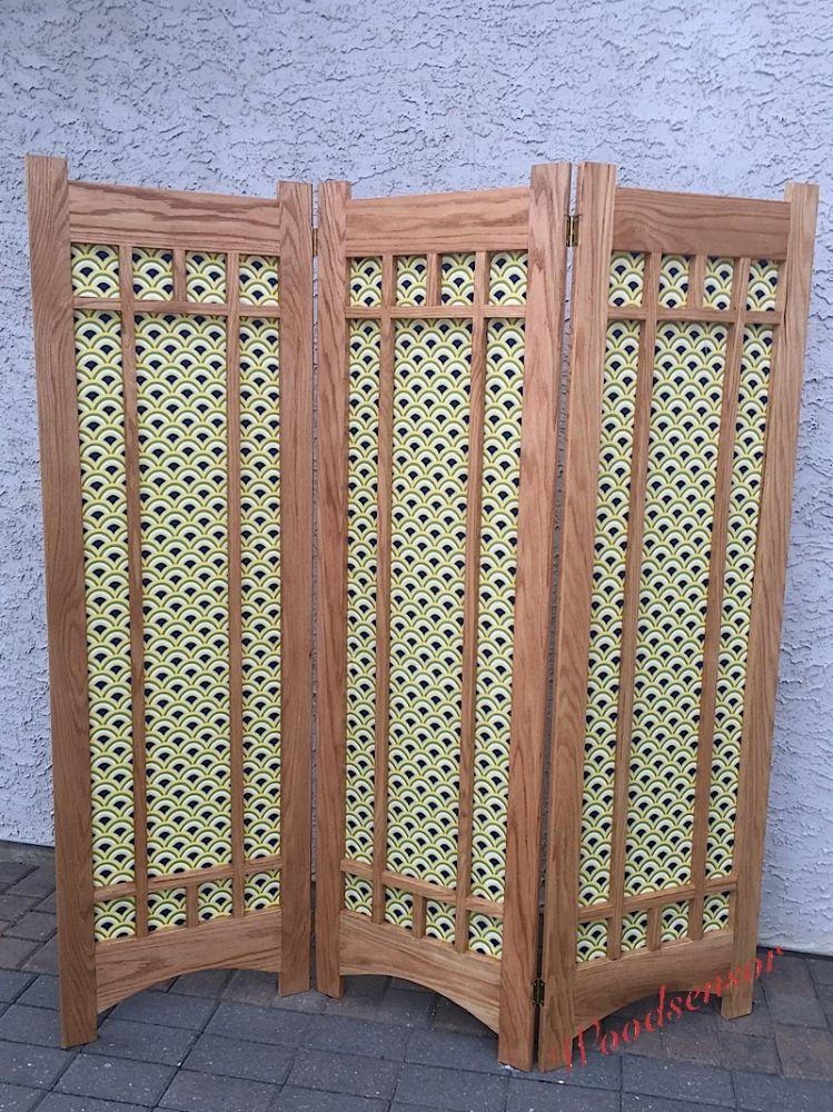 屏风是Mission风格的3折结构,全榫卯连接。合叶是活动的,每扇屏风可以通过把活动的合叶轴去掉分开,便于搬运。