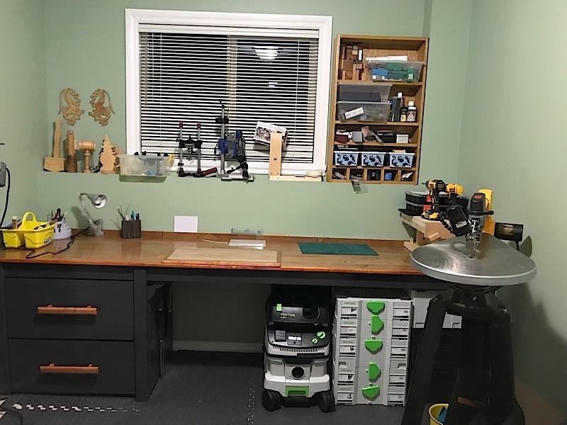 我在我家的地下室有个工作间(studio)。说是工作间,用的频次实际也不是很多,主要是当工具间使用了,或者在冬天的时候想做东西的时候偶尔用用。用的不是很多的原因是我没有一个合适的工作台,以前的一个台子就是一个写字台,因为比较高,台面太小,操作起来不是很方便。