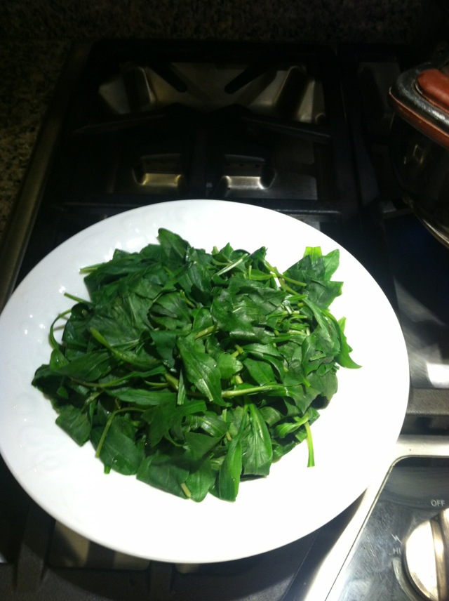 但在凉拌马兰头之前,需要把马兰头在沸水中先烫个一分钟到两分钟,烫得时间长则味道淡些,烫得时间短则味道重一些。可以不烫吗?也可以,但马兰头特有的涩味会比较大,象我种的这种既不施肥,又不打农药的马兰头,味道尤其浓郁,可能还是先烫一下比较好。以前喜欢麻油凉拌马兰头,确实很有风味,但老中产的麻油味道不足,日本人的麻油味道倒是很足 ,但又怕他们的核辐射,所以 ,我现在只用意大利的extra virgin 的橄榄油了。味道也很好 。