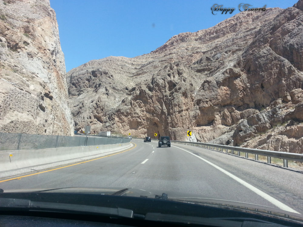 从Page 开往拉斯维加斯400多公里,明显感到地貌的变化,植被越来越少,山石裸露, 一望无际的没有生机。