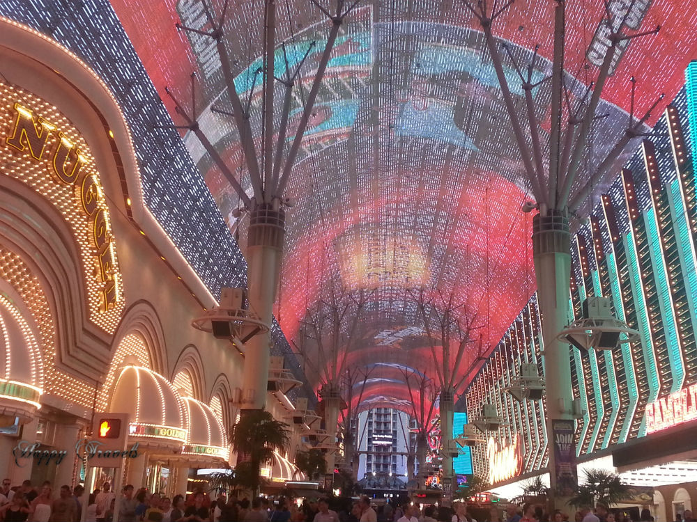逛到下午4点多,大人孩子都很疲乏,主要天气也太热。奢华的大酒店,赌场也已窥一斑,大家一致同意去酒店check in休息。我们的住宿定在了老城区Fremont。这条街很热闹,casino, 各种show,空中飞人,大分贝的音乐,舞动的人群,可以忘却一切的娱乐其中。