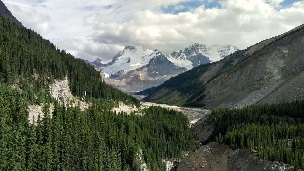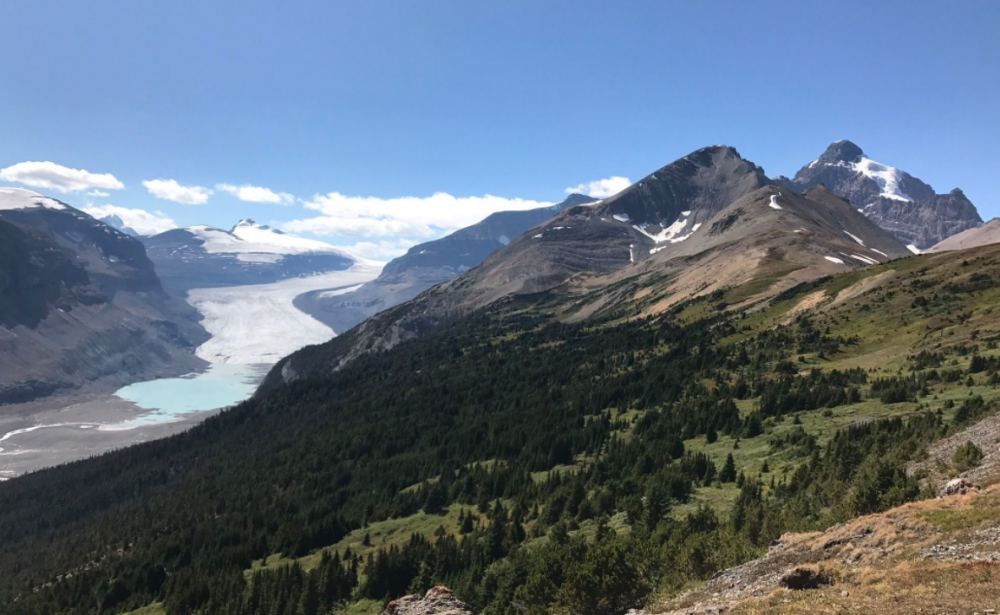 快到山顶时道路很狭窄,和下山人要错身而行。爬到最高处,壮丽的整个国家公园最长的冰川Saskatchewan Glacier呈现在眼前。