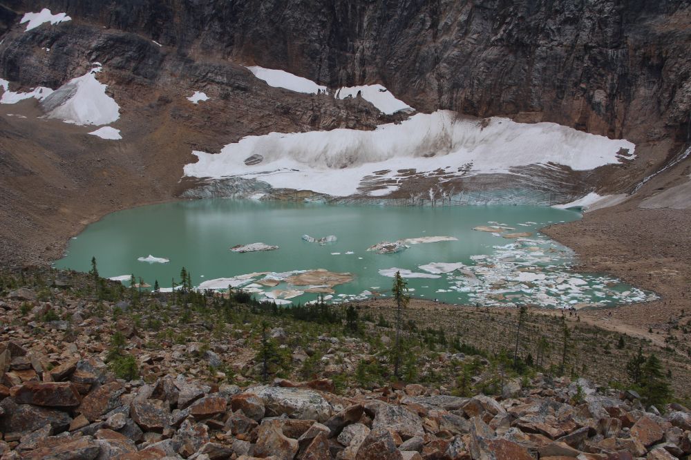 山脚下的Cavell Glacier,由于气候变化退缩很严重,现在已化成了一个冰川湖Cavell Pond。