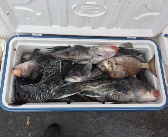 因为水下的鱼太多了,一但我找到了漂钓黑鲈的手感之后,便一发不可收拾。不一会就钓到了本次船钓黑鲈的限量,而且黑鲈的个头都超过了三磅。除了钓到黑鲈之外,我还钓到七八条有两磅重的鲷鱼,一条大个头的比目鱼。