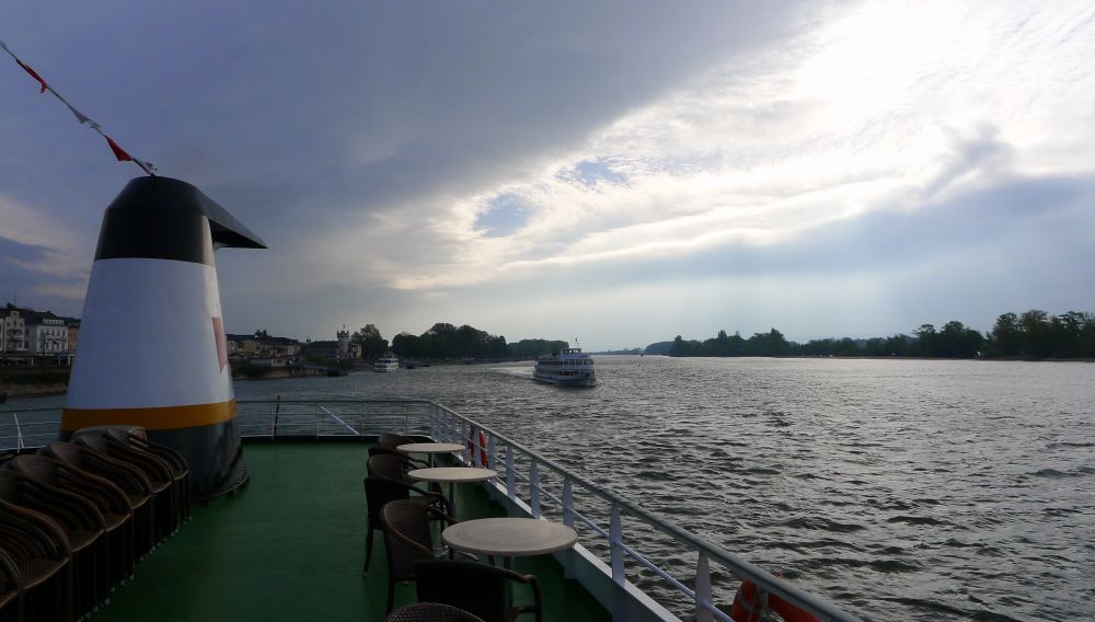 在导游那充满幽默的朗朗笑语中,我们的大客车于早晨八点钟离开宾馆,前往莱茵河边一处游轮码头。也不知为什么,一想到游河玩水,我的心情豪迈得像第一次站在海拔几千米高山的山顶远望。看来我即不是富贵命,也不是穷命,而是水命,逢水则喜啊。