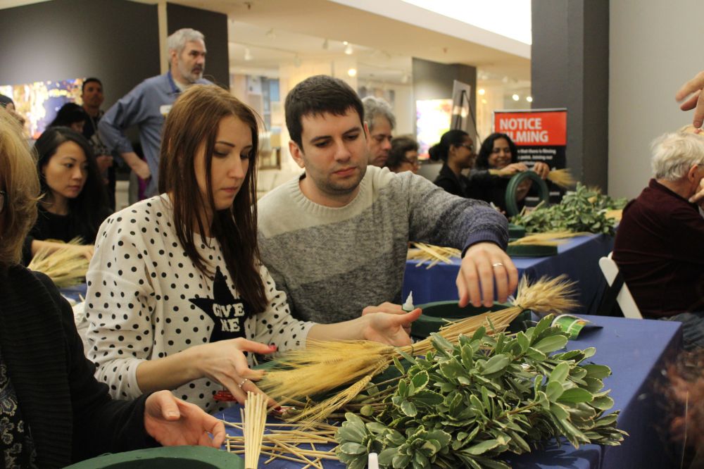 在名师指点下,做自己的插花作品,真是新鲜有趣的体验,男女老少都乐在其中。